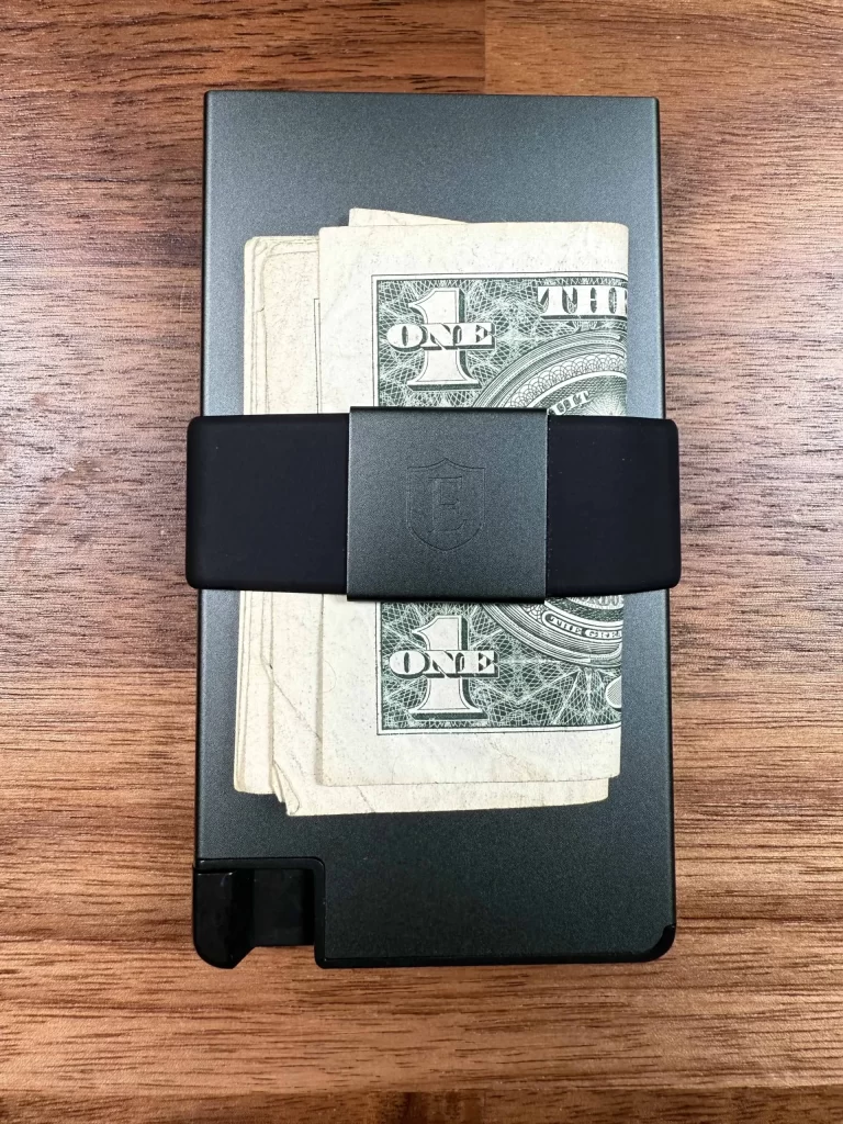 I didn’t even bother. Same single-slot design as the Ridge means the same impossible one-handed access. You’re fumbling with the whole stack, cards are sliding everywhere, and that money clip is now poking your hand while you try.